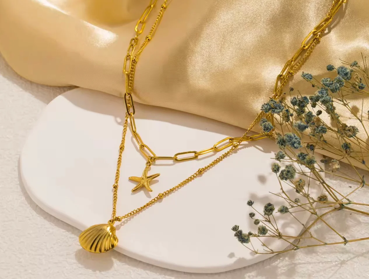 collier multirangsa vec etoile de mer